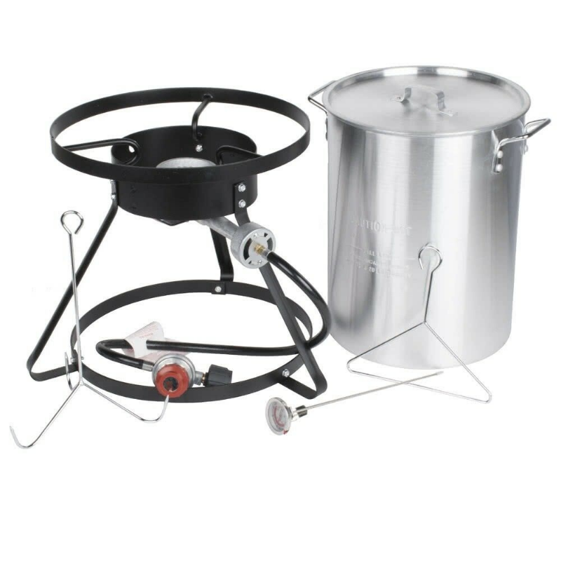 Best out of all, the stainless steel turkey fryer can be heat adjusted with the help of its handy regulator. Make perfectly fried turkey serve on special holidays by cooking it in our premium turkey fryer.