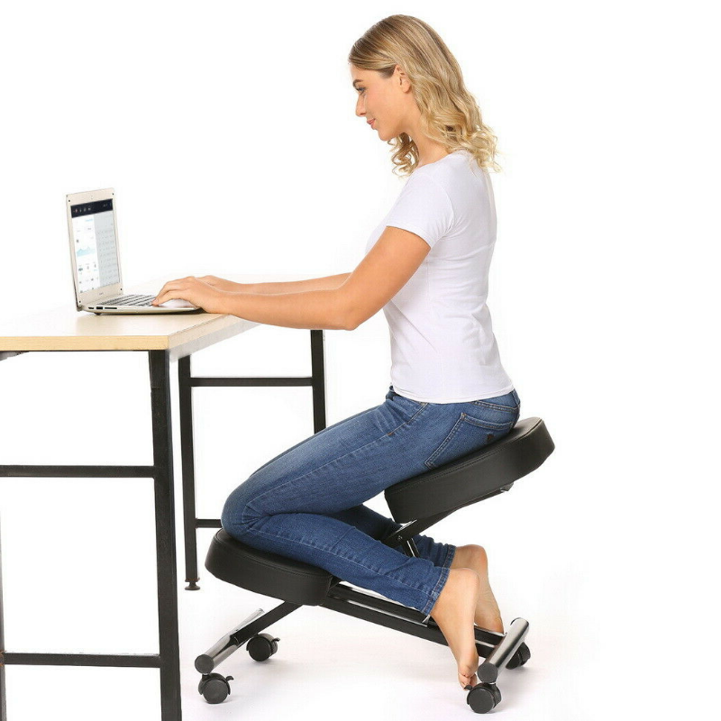 ADJUSTABLE – Equipped with a hydraulic pump, the kneeling office chair can be adjusted to match your height requirements. There is also an option to adjust the angle of the kneeling desk chair for your convenience.