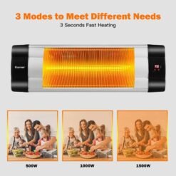● Energy Savings: Equipped with remote control and a clear LED display, the wall-mounted patio heater can help you set the timing and adjust heating power which is easy to operate. Built-in carbon fiber heating tube, the infrared heater is efficient and saves energy.